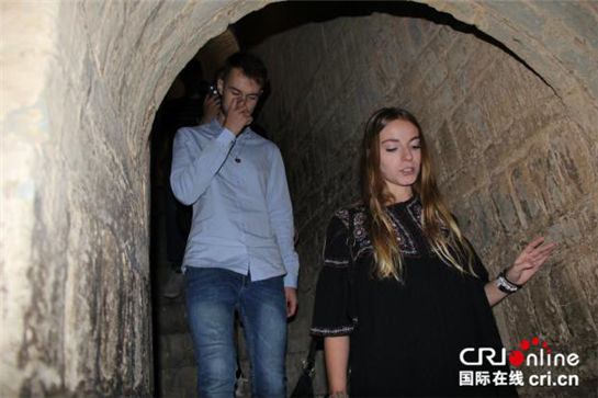 在崇文塔景区,5位丝路青年对崇文塔景区的高塔很是兴奋,走进塔内拾级而上。据介绍,崇文塔属楼阁式砖塔,平面呈八角形,共十三层,总高度87.218米,其一层高度就相当于平常楼房两层。等爬到塔顶时,5位丝路青年们站在高处眺望远方,只见晴空万里,楼宇茫茫,他们禁不住赞叹道:“这里真的太美了!”