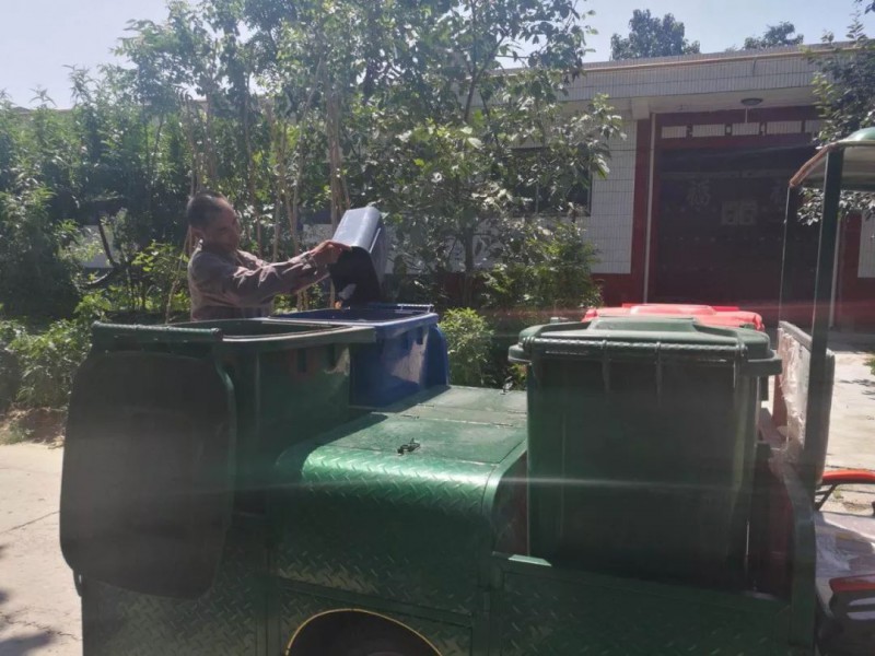 采访中,华商记者发现,每天早上8点之前,工作人员会在村子里收集完垃圾。在收集中,工作人员会把村民家中不可腐烂的垃圾倒进蓝桶里、把可腐烂的倒进绿桶里、诸如废旧灯泡等危险品放进红桶里、其他垃圾放进灰色大桶里。