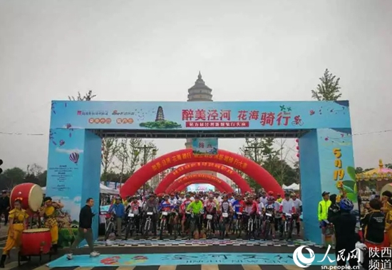 5月20日,以“醉美泾河·花海骑行”为主题的2018年西咸新区泾河新城第五届骑行大赛在崇文塔景区成功举办,来自全国各地的300余名骑行爱好者和现场的近千名观众齐聚泾河新城。