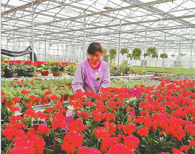 “目前,我们园区固定聘用的职业农民有60人,每人每月能挣3000元。到了忙碌时节,还会从周边村子雇用临时工,多的时候近400人。为了带动村民一起发展,我们正在和周边村子洽谈,通过‘龙头企业+合作社+农户’的方式,将花卉种植延伸到村民中去。”郭丽娜说。