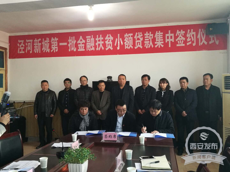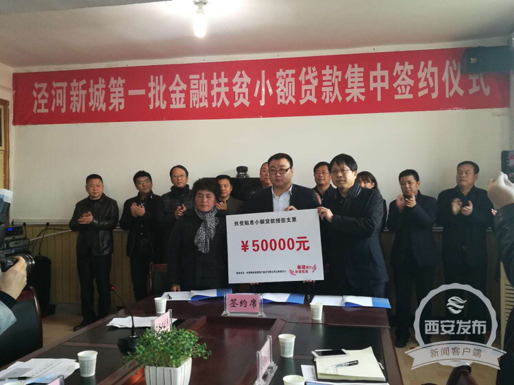 西咸新区泾河新城举办第一批金融扶贫小额贷款集中签约仪式,首批100户贫困户顺利获得人均5万元小额贴息贷款。