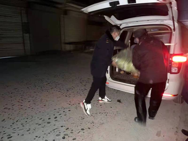 泾河新城在多方组织货源的同时,第一时间组建内部配送体系,确保货源及时进新城,抵达后第一时间达到各村(社区)预定分发点,再有转运队及时进行标准话分装并第一时间送到居民手中。