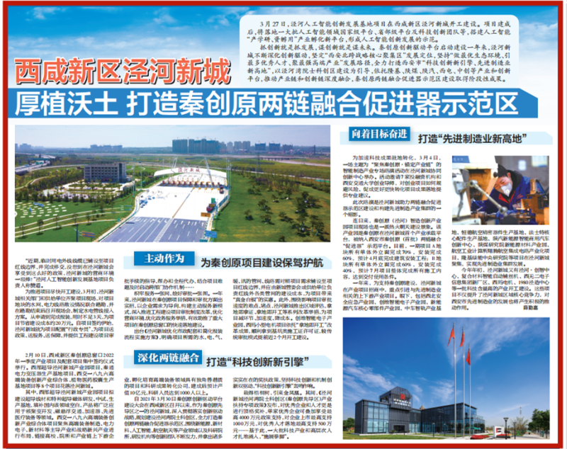 自2021年3月30日秦创原创新驱动平台建设大会在西咸新区召开以来,作为秦创原先导区之一的泾河新城,深入贯彻落实创新驱动战略,规划建设泾河湾院士科创区,全力打造秦创原两链融合促进器示范区,围绕新能源、新材料、人工智能、航空航天等产业领域以及科研院所、研发机构等创新团队不断发力,并拿出诸多实实在在的奖扶政策,坚持科技创新和机制创新双驱动,“科技创新新引擎”轰鸣作响。