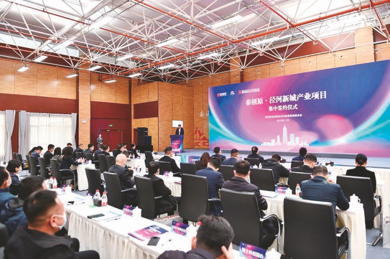 11月5日,秦创原·泾河新城产业项目集中签约。总投资额52.6亿元,涉及文化艺术、高端制造、平台经济、新能源、新材料、医疗科技、光电科技等领域的9家产业类项目落地泾河新城。西咸新区党工委委员,西咸新区泾河新城党委书记、管委会主任张宏伟等出席签约仪式。
