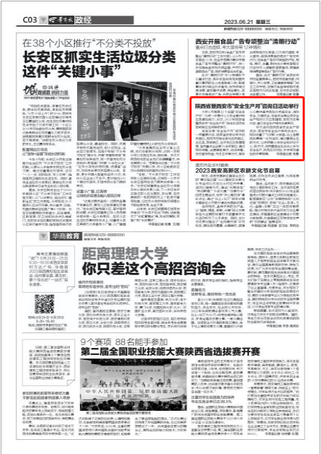 今年6月是第22个全国“安全生产月”,为进一步提升公众安全意识和应急避险能力,近日,2023年陕西省暨西安市“安全生产月”咨询日活动在西咸新区泾河新城举办。