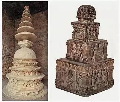 右图:白沙瓦博物馆藏公元2-3世纪石小窣堵波