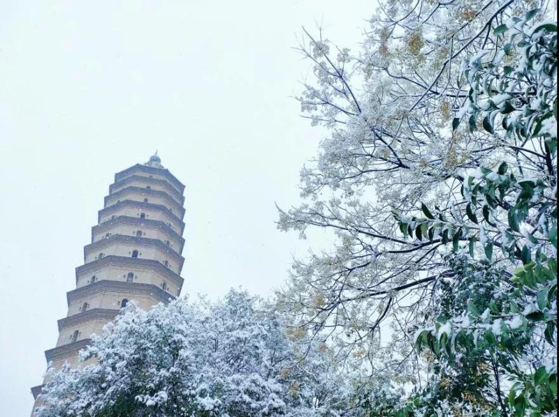 雪落崇文塔