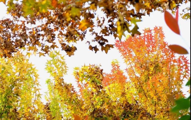 入眼是红绿相映,层林尽染,