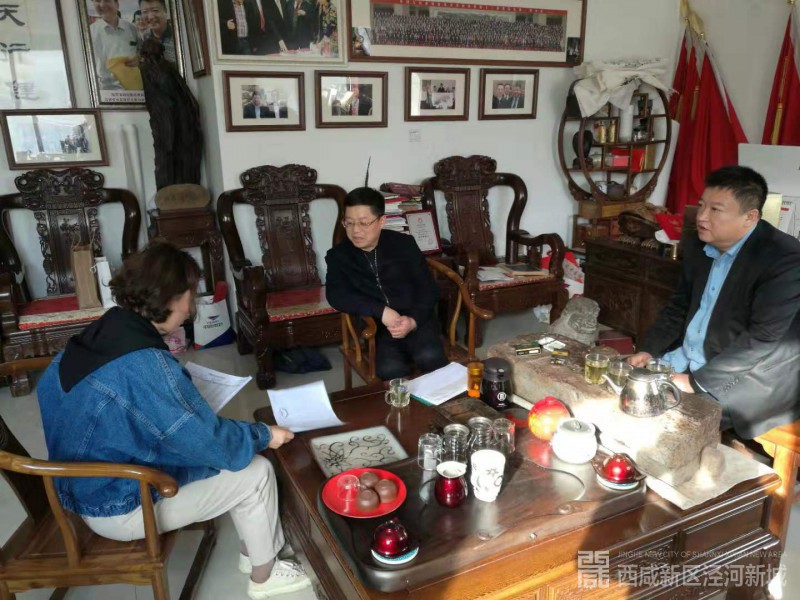 (图为党委书记贺甲民同志走访陕西原点古镇灯都城置业有限公司)