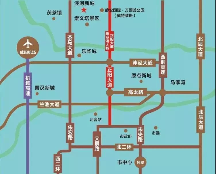 2、西安北站—乐华欢乐世界:站前广场→元朔路→建元路→尚稷路→正阳大道→沣泾大道(向西)→乐华欢乐世界;