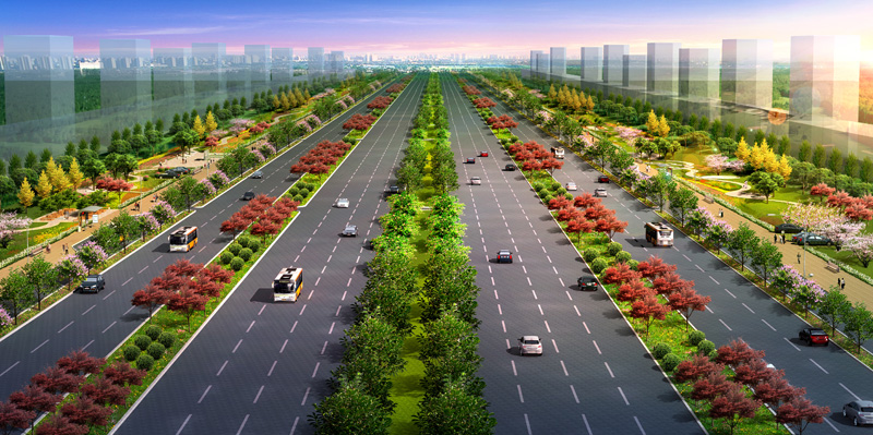 道路全长7.5公里,(泾河新城西边界-正阳大道)红线宽100米,道路两侧绿化带各20米,双向八个快速车道,辅道为双向六车道,包括2座互通式、1座半互通式立交。