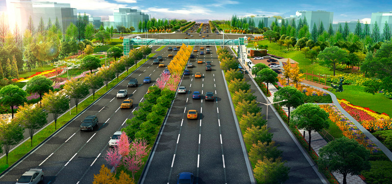 道路全长8.6公里,含跨泾河大桥,(泾河新城南边界-高泾大道)红线宽60米,道路两侧绿化带各20米,双向八车道,包括分离式立交1座。