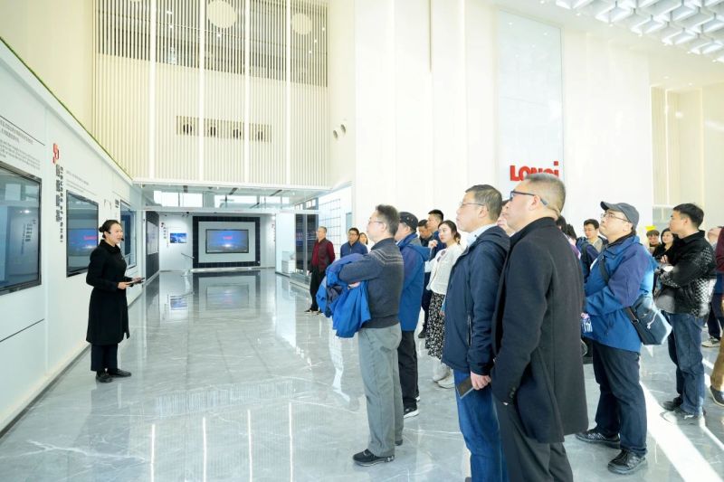 在展厅内,调研团成员们仔细观赏陈列的光伏电池展品,通过宣传片详细了解目前园区建设情况及隆基绿能光伏产业未来发展前景。“今年11月,我们自主研发的晶硅-钙钛矿叠层电池达到33.9%的转换效率,成为目前全球高效叠层太阳能电池效率的最高纪录。”相关负责人向记者们介绍道。