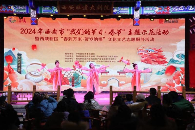 非遗表演、写福字、送春联、拍全家福……浓浓的年味“到万家”。1月28日下午,2024年西安市“我们的节日·春节”主题示范活动暨西咸新区“春到万家·贺岁纳福”文化文艺志愿服务活动在西咸新区泾河新城茯茶镇景区举行。