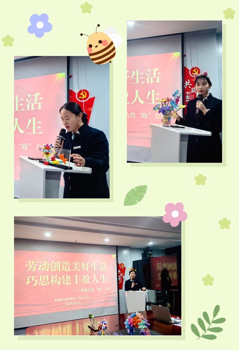 在这春回大地,万物复苏的美好季节里,我们迎来了第114个“三八”国际妇女节。为表达对全体女性工作人员的关爱,增强团队凝聚力。3月7日中午,西咸新区政务服务(泾河)中心举办了一场“指尖生花”的DIY手工制作活动。