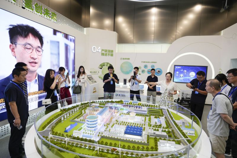 在秦创原(泾河)智造创新产业园,围绕着展厅中一条完整的氢能产业链图谱,采访团开启了此番泾河之行。悬浮技术压缩机、车用燃料系统、氢燃料电池发动机、氢能自行车、氢能无人机等一系列产业技术成果让记者们耳目一新,大家纷纷举起相机记录自己的所见所闻,全方位报道泾河新城氢能产业发展成效。