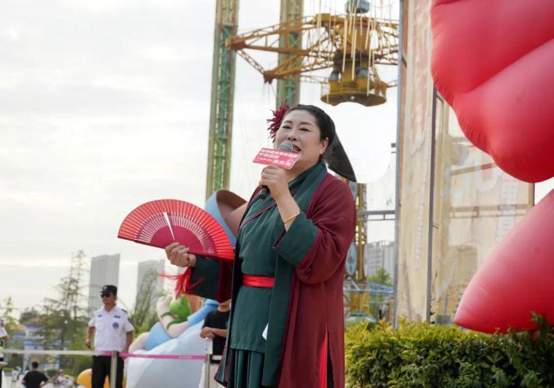 “宝贝们好!今天是七夕,在泾河新城乐华城,我要让有情人终成眷属。”8月10日(七夕节当天),随着音乐响起,身着绿衣红裳,头挽发髻,带着大红花的开封干娘—赵梅登上乐华恒业欢乐世界(以下简称“乐华城”)广场舞台,朝台下热情地打着招呼,观众的呐喊欢呼声也随着她的到来从四面八方涌上舞台。