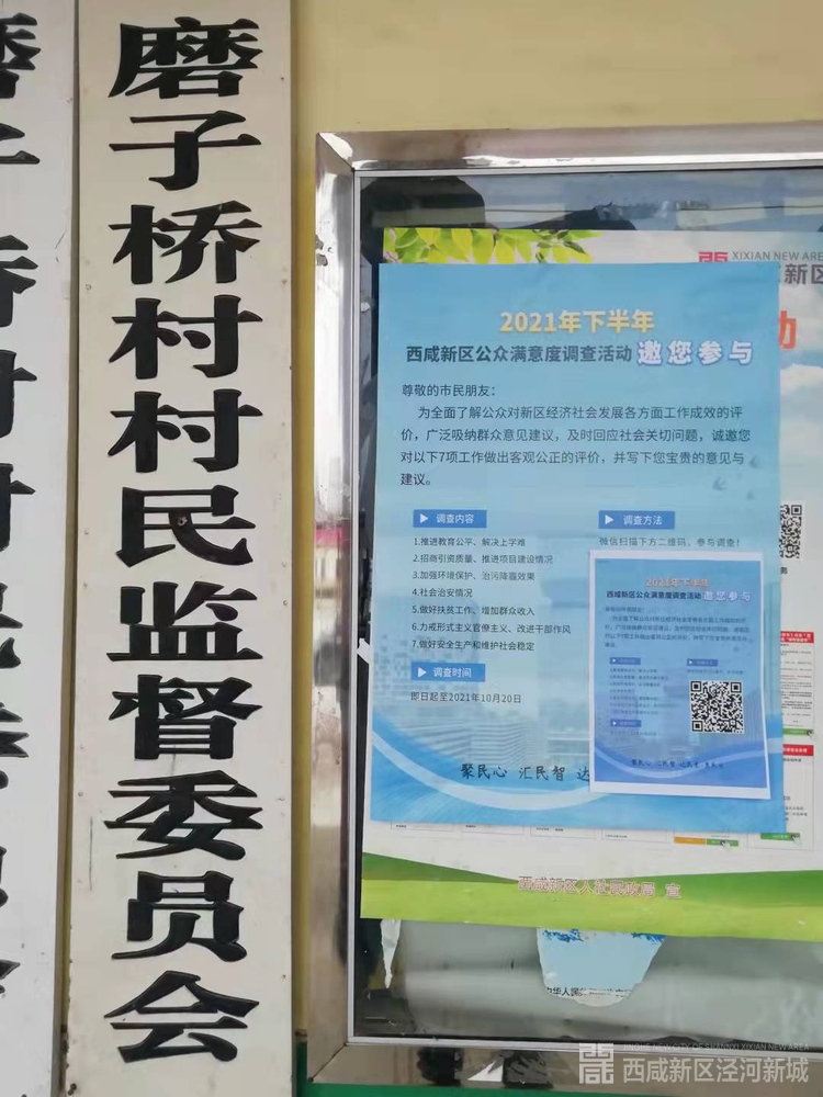 会后,各村(社区)纷纷组织召开满意度调查工作安排会议,张贴2021年下半年西咸新区公众满意度调查活动宣传单,并以微信扫码的形式向群众发放满意度测评调查问卷。