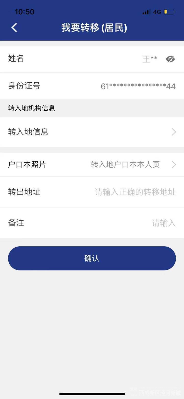 1、转入地信息填写