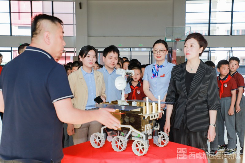 5月28日,秦创原先导区科技活动周·泾河新城专场活动——“中国梦·太空梦”航空科普知识主题活动在泾河新城第二学校举办。泾河新城党委委员、管委会副主任任炳群视察了活动举办情况,观看了学生们的科学手工作品,聆听了科技馆“小小解说员”的演示,观摩了科普老师的讲解。