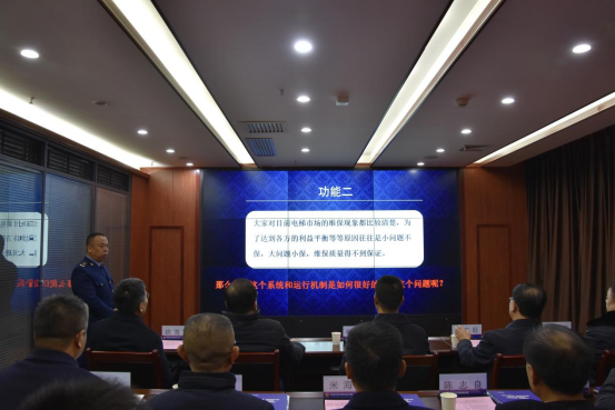 调研组一行赴赴市监泾河新城分局机关,观看电梯智慧监管宣传短片,对电梯安全智慧监管系统从调研论证,到功能实现有了全面清晰地了解。杨鹏飞局长从电梯智慧监管系统基本情况、系统运行机制及功能亮点等方面,详细介绍了运维平台、物业平台、维保平台和监管平台的基本功能,逐一展示了电梯安全智慧监管系统如何实现按需维保、如何解决维保乱象、如何实现科学高效监管等功能。沣东分局张锻炼局长介绍了“互联网+阳光食安”智慧平台建设情况及功能亮点。
