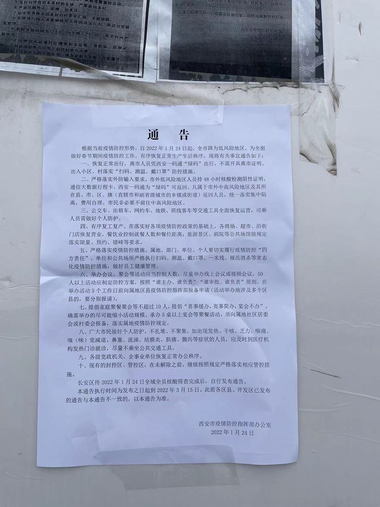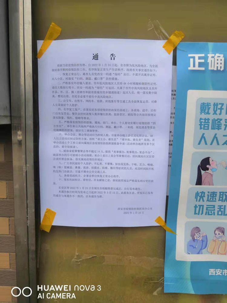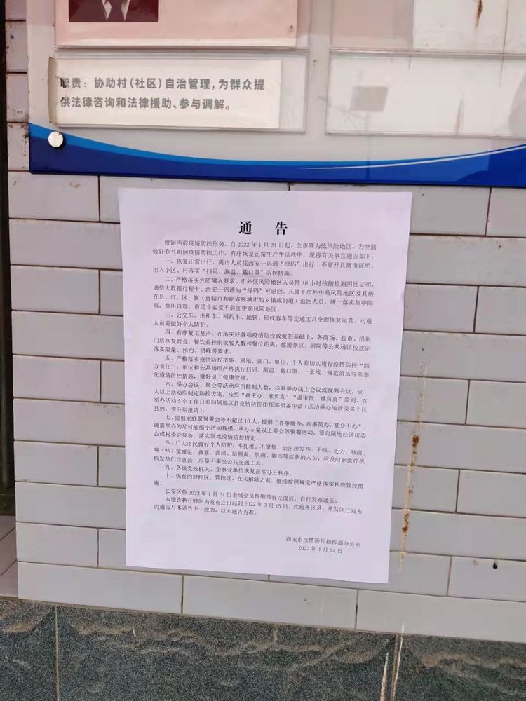 张贴西安市最新通告,加强宣传。