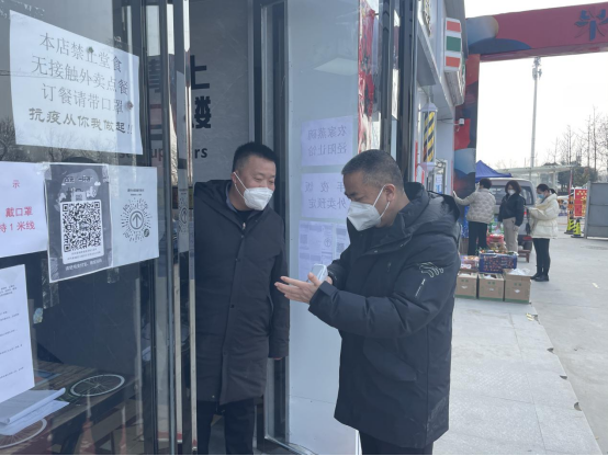 在永乐、高庄、崇文街镇,杨鹏飞现场查看了各商超、便利店扫码、亮码、测温、戴口罩、一米线、环境消杀等疫情防控措施落实是否到位,检查各市监所网格长、网格员“一包十”疫情防控监管工作落实情况。同时,积极向经营户宣传疫情防控等法律法规、政策措施,全面增强经营者的责任意识。
