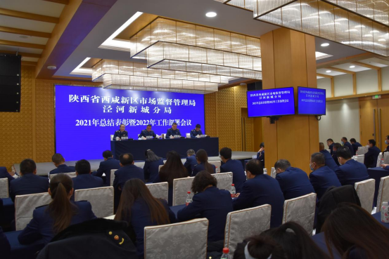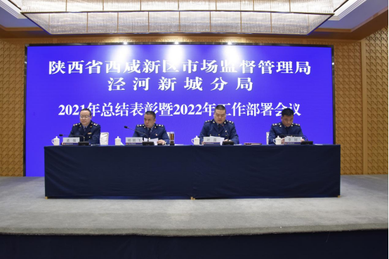 杨鹏飞局长从6个方面回顾了2021年分局工作取得的成绩,他指出,在区局、新城的坚强领导下,分局充分发挥职能,认真履职尽责,全年工作成绩和单项工作得到了上级部门的高度认可和一致好评,先后被省局、新城、区局通报表彰11次,2021年度分局被西咸新区市场监督管理局评为优秀单位,实现了“十四五”良好开局。