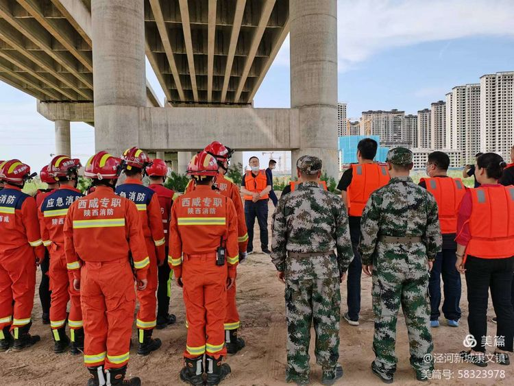 为全面提高崇文辖区应急救援队伍的应急处理能力和协调作战能力,熟练掌握应急救援程序和方法,2022年5月19日,崇文镇平安建设和应急管理办公室联合泾河新城消防救援大队在崇文镇滨江翡翠城南泾河岸边河滩组织开展防汛救灾应急演练。