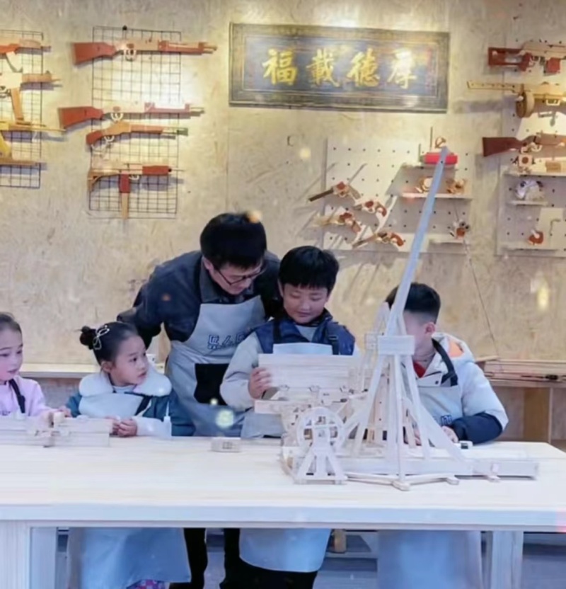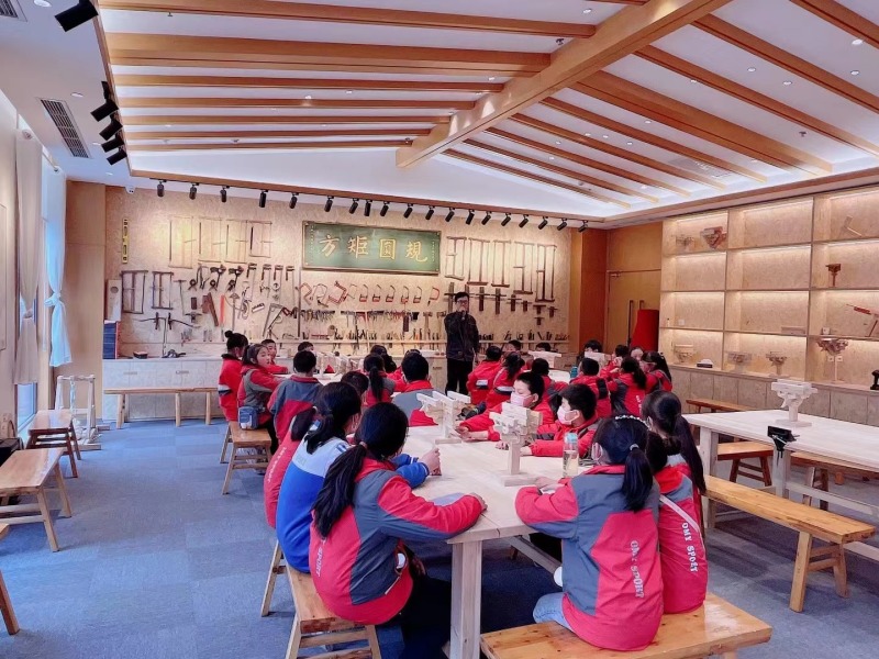 茯茶镇“匠人匠心”中国传统木文化研学基地是陕西首个以木艺古建为主题的研学亲子综合体验基地,基地通过体验式研学、劳动科学课堂、儿童游乐、科普宣教、手作体验、亲子互动等形式,将工匠精神、木艺技能、木艺文创等融为一体,以一榫一卯架起追寻传统木文化水脉的桥梁。