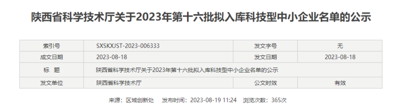 根据《科技型中小企业评价办法》有关要求,现将陕西省2023年第十六批852家拟入库科技型中小企业名单予以公示,公示10个工作日,即2023年8月21日-9月1日。
