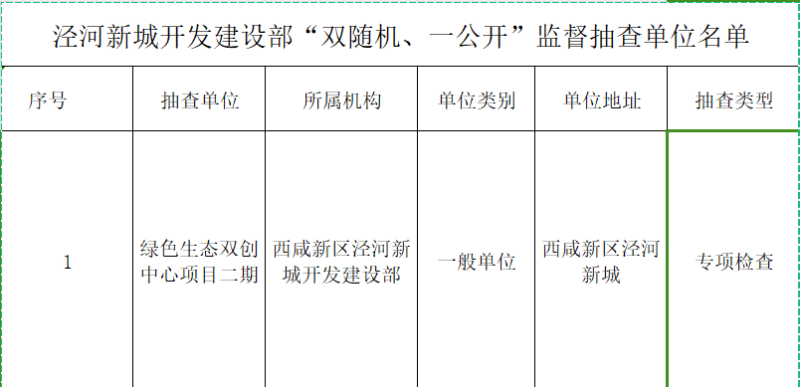 泾河新城开发建设部“双随机、一公开”监督抽查单位名单