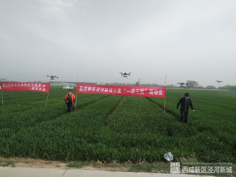 当前小麦已经进入病虫害防控工作的关键时期,加之今年条锈病流行爆发,泾河新城及时组织8台专业防治无人机,开展以防治条锈病为主的小麦“一喷三防”工作。农业农村局技术人员向街镇工作人员现场讲解当前病虫害发生症状及防治技术,当场发放防治技术明白纸200份。