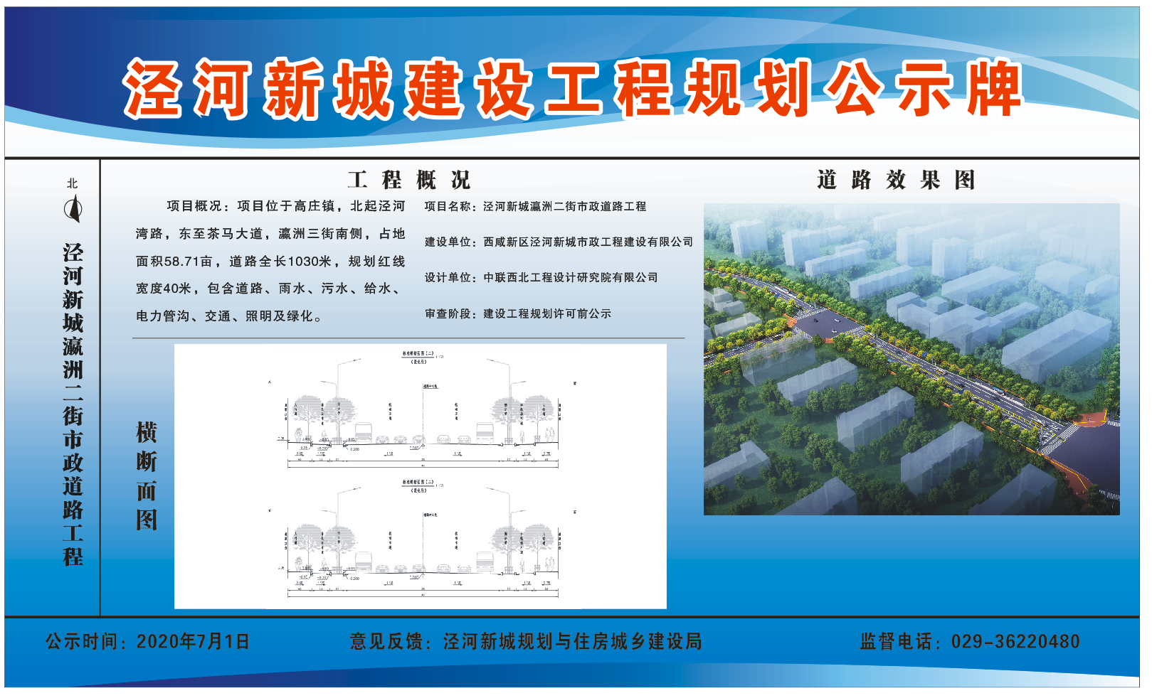 西咸新区泾河新城市政工程建设有限公司瀛洲二街市政道路工程已通过设计方案审查,现进行建设工程规划许可批前公示,公示期2020年7月1日至2020年7月7日。如有异议,请于公示期内向规划与住房城乡建设局反馈,监督电话029-36385570。