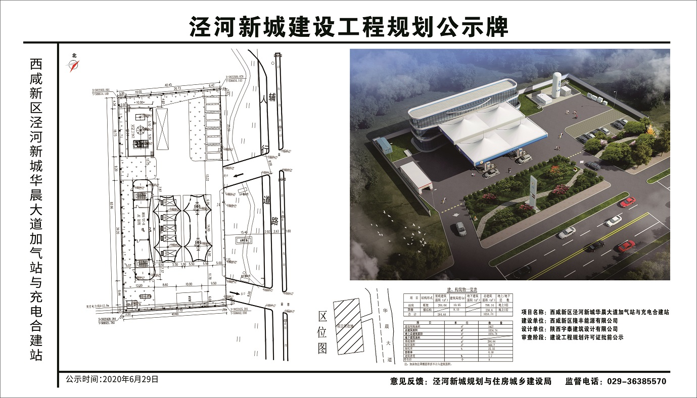 西咸新区隆丰能源有限公司西咸新区泾河新城华晨大道加气站与充电合建站项目已通过建筑设计方案审查,现进行建设工程规划许可批前公示,公示期2020年6月29日至2020年7月5日。如有异议,请于公示期内向规划与住房城乡建设局反馈,监督电话029-36385570。