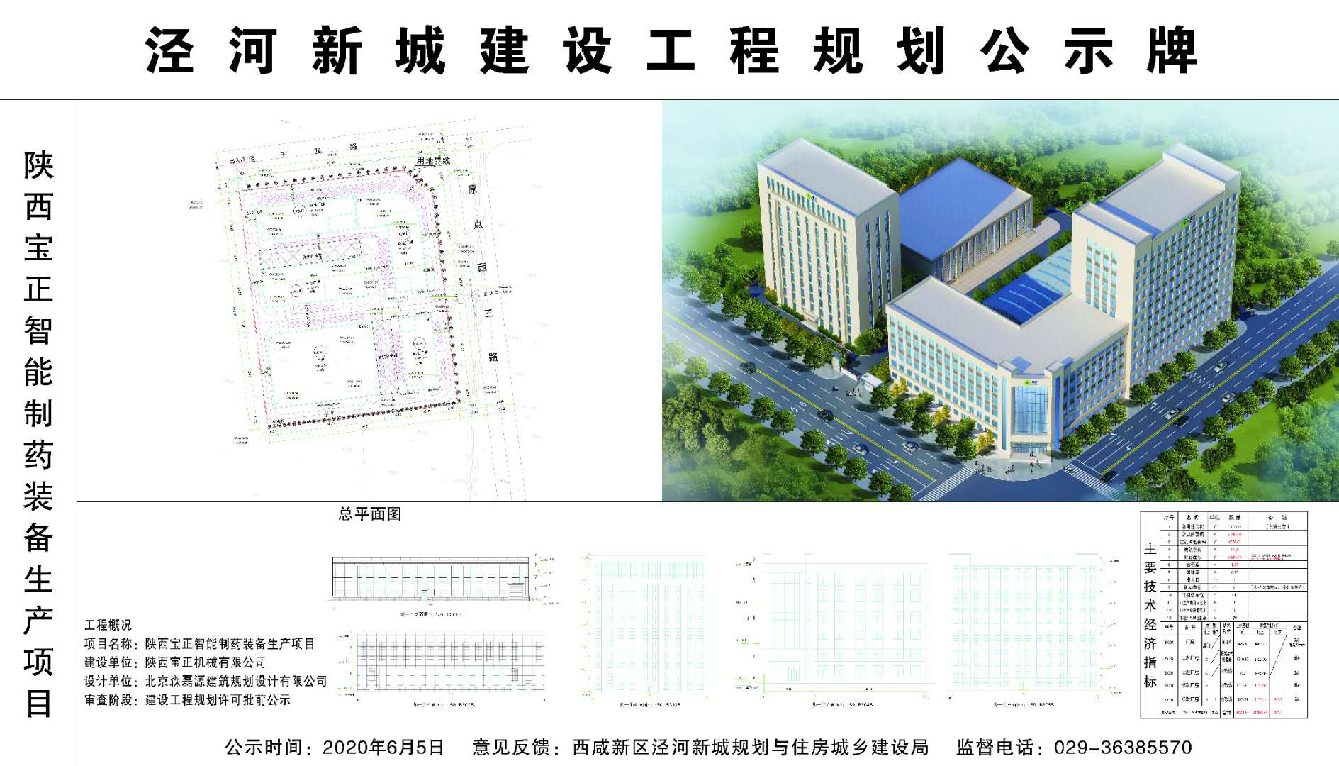 陕西宝正机械有限公司陕西宝正智能制药装备生产项目已通过建筑设计方案审查,现进行建设工程规划许可批前公示,公示期2020年6月5日至2020年6月11日。如有异议,请于公示期内向规划与住房城乡建设局反馈,监督电话029-36385570。特此公示。