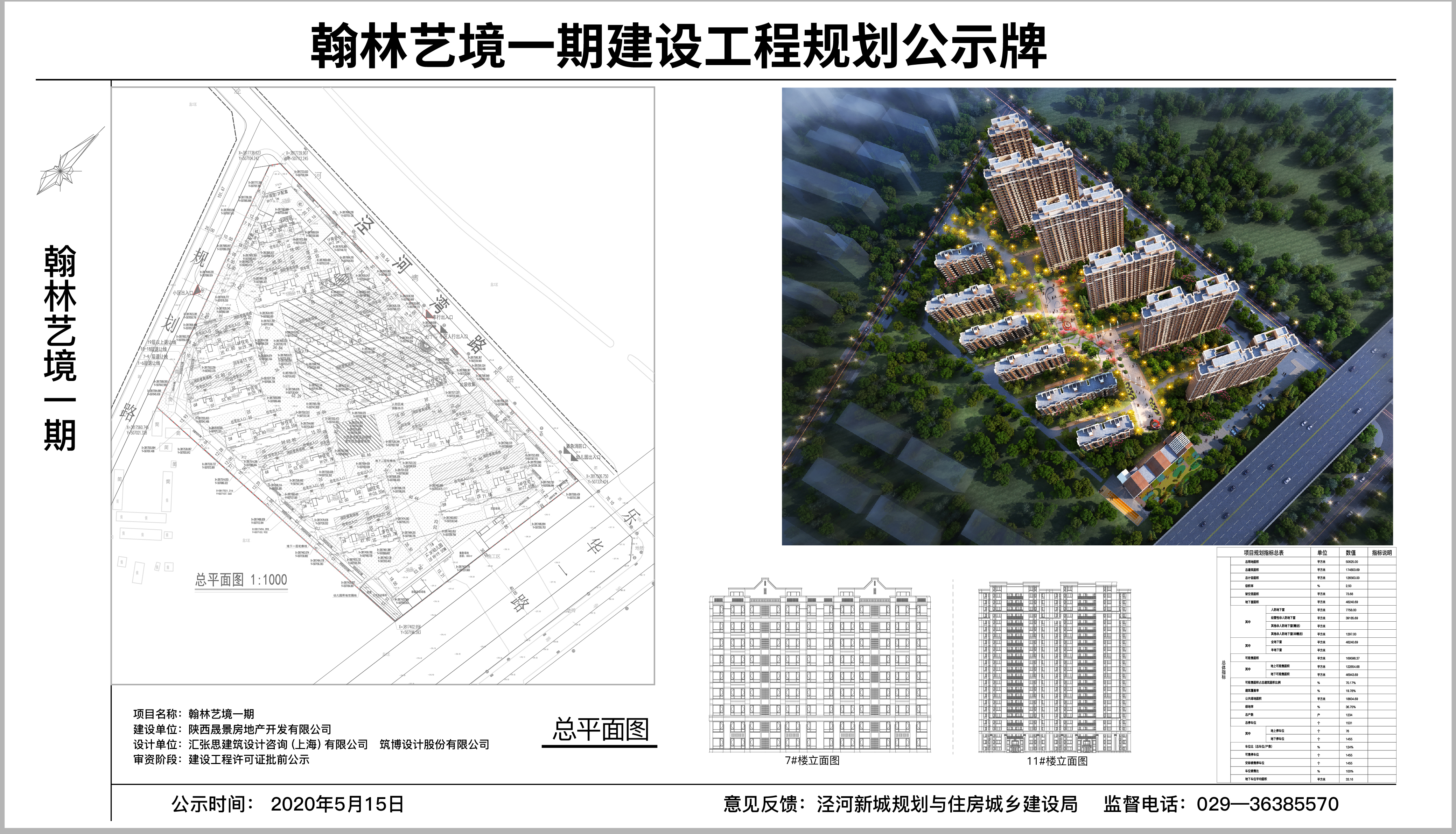 陕西晟锦房地产开发有限公司翰林艺境一期项目已通过建筑设计方案审查,现进行建设工程规划许可批前公示,公示期2020年5月15日至2020年5月21日。如有异议,请于公示期内向规划与住房城乡建设局反馈,监督电话029-36385570。 特此公示。