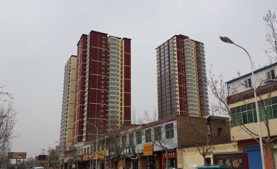 泾都一号2#、3#、5#(从左向右),共计600套均主体封顶,达到竣工验收条件。