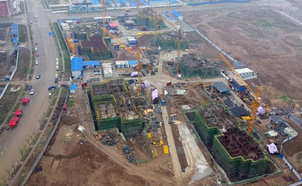 1号地块4#-13#,共计2500套均主体封顶,窗户、烟道安装完成。