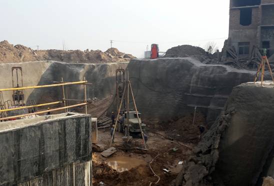 3号地块B4,结构出正负零,地下室外墙防水、边坡支护完成,正在进行桩基施工。