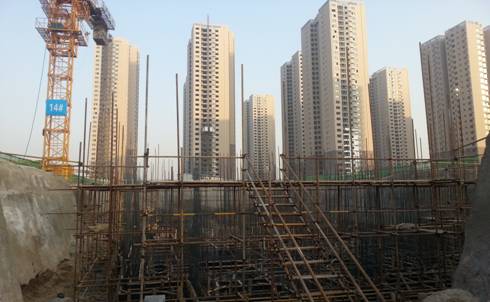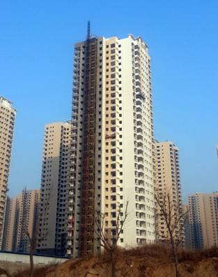 8号地块A1,370套主体封顶,进行安装暖气片,刷外墙涂料。