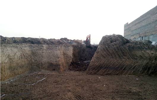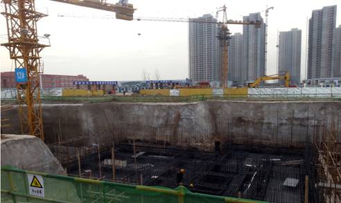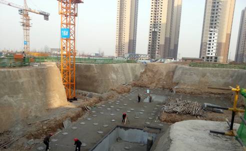 14#楼桩间土,破桩头完成,垫层施工完成,进行防水施工;