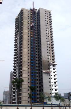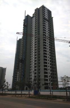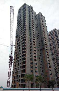 其中A1-A3进行内部粉刷,A4-A9号楼二次结构施工至24层