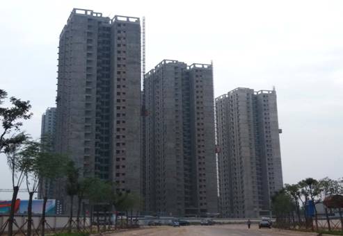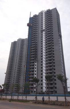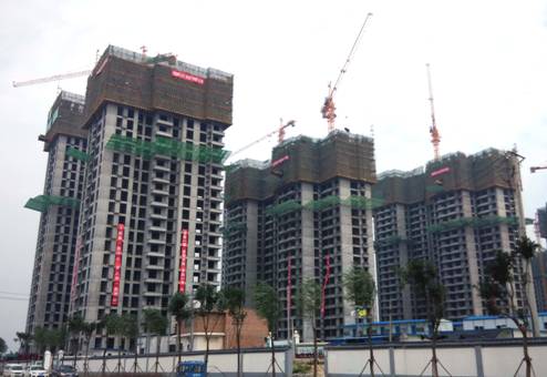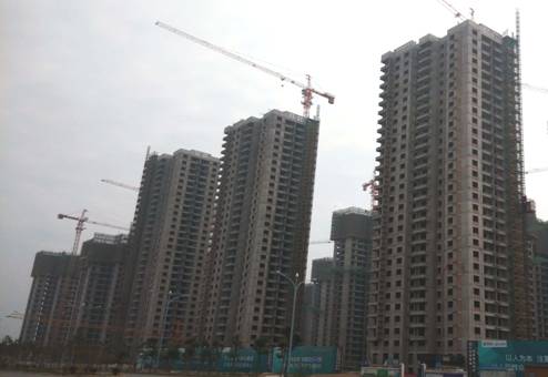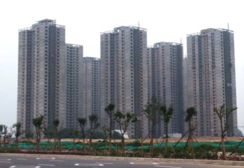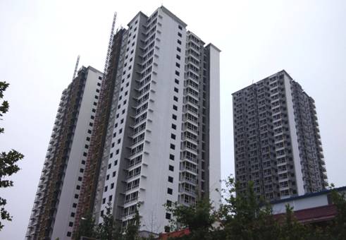 1号地块1#、2#、3#(从右向左),共计500套均主体封顶,已经完成内部粉刷