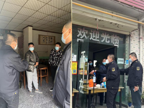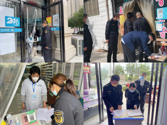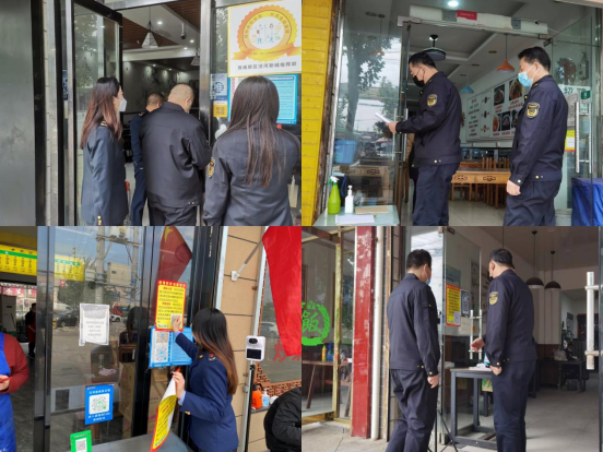 三是抓实抓细,紧盯监管漏洞。执法人员对所有监管区域餐饮主体,要求认真落实各项疫情防控措施,落实主体责任,采取餐桌堵门、线上销售等多举措方式避免人员入店。执法人员耐心开展政策宣传与引导,挨家挨户将防疫要求传达到位。同时,对便利店、商店等地,严格检查经营主体落实场所码、“逢进必扫”、“逢扫必验”、测体温、登记、佩戴口罩,定期消毒、核酸检测等防控落实情况,详细查看消毒消杀和从业人员健康监测等台账,切实把防疫要求落实落细。
