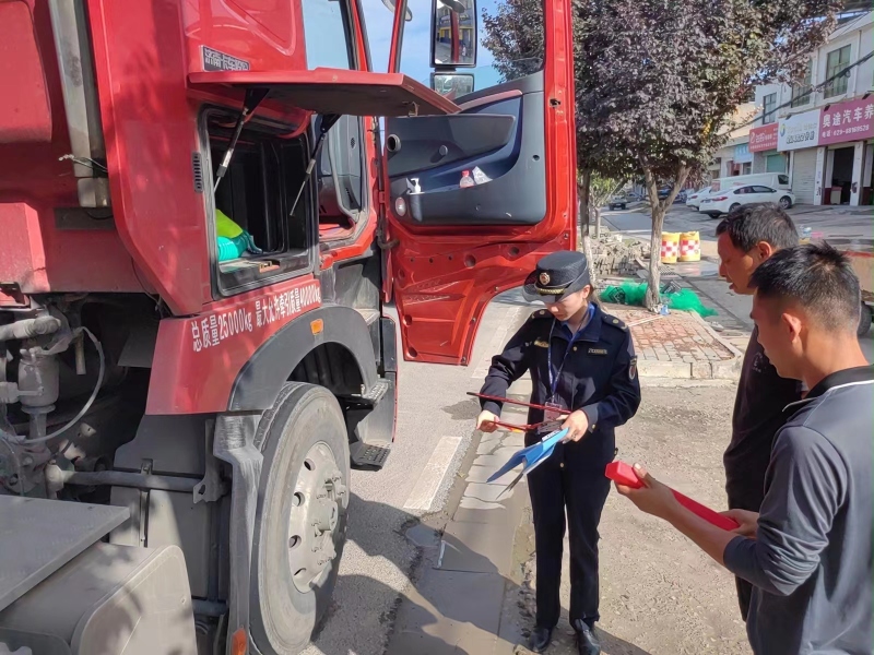 执法人员对辖区渣土运输车辆主动防御系统、安全设施配备情况车容车貌等进行检查,做到“人防”和“技防”相结合,务必消除所有安全隐患,坚决防止车辆带病上路等问题的发生,从源头上消除道路交通安全隐患。