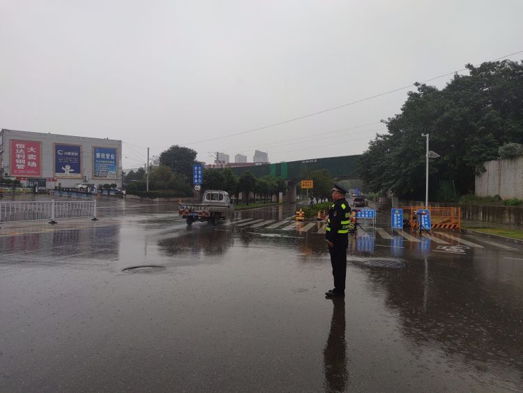 执法人员在辖区各积水点执守,保障车辆与行人通行安全!