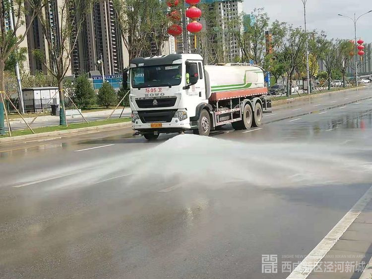 市容环境卫生提升,高泾大道与正阳大道段西段、东段、中段道路整洁,保洁正常。高泾大道、泾河大道、正阳大道段(高泾大道~泾河大道)主辅道路面已湿扫,卫生整洁。乐华城周边环境卫生良好,泾晨路路面及两侧绿植清洗情况良好。