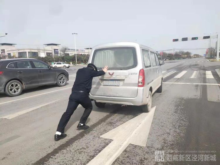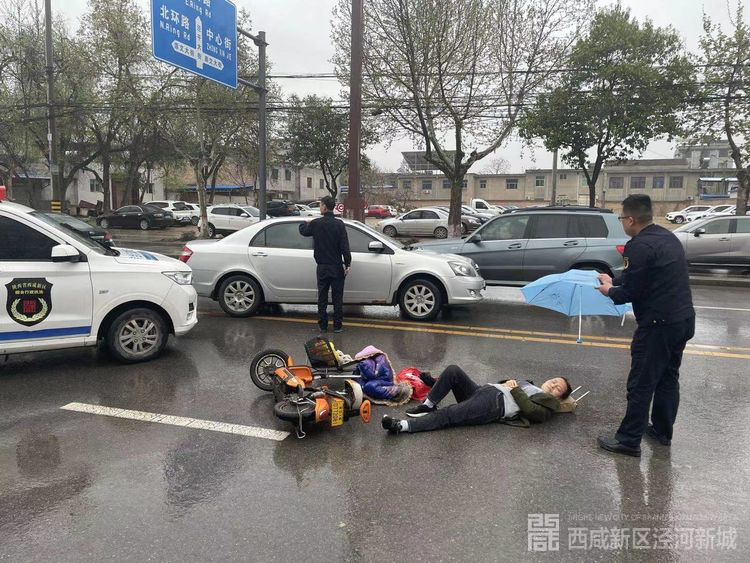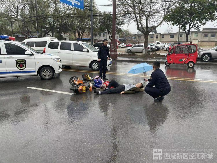 4月1日上午10点30分左右,泾河新城城管交通局执法人员在巡逻途中,遇到一起交通事故,现场执法人员立即投入到事故现场交通疏导和伤者救助工作。