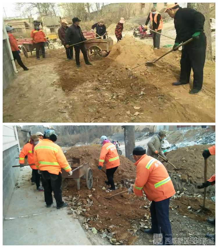 永乐镇辖区内的公厕周边培土平整,给开春种周边的植绿植做好准备工作。